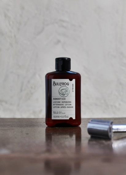 The secret formula developed with Bullfrog barbers, ideal for a soothing, refreshing and invigorating action, to be applied on the skin after shaving. Calms and softens the skin thanks to protective and regenerating ingredients.