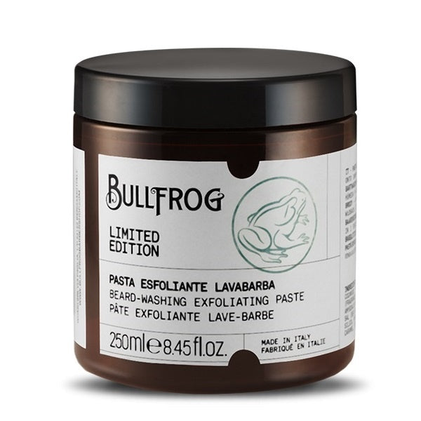 The secret formula of Bullfrog barbershops, ideal for deeply cleansing your beard and obtaining a shiner, softer and neater look. Inspired by hand-washing pastes used in factories, it is perfect as a preparatory treatment for a full beard reshaping service carried out in a salon. The exfoliating particles used are softening and hydrosoluble grains of sugar: the beard thus becomes softer and rinsing is particularly easy The formula contains a special plant-based anti-odour ingredient, perfect for helping rid the beard of the smell of food or smoke.