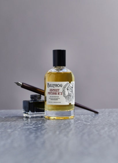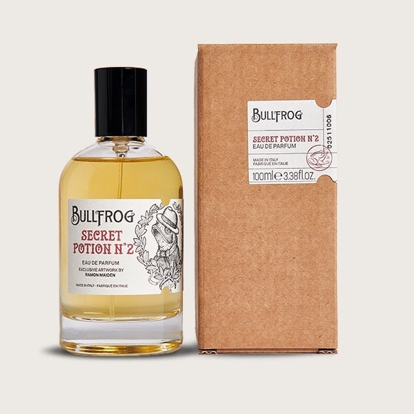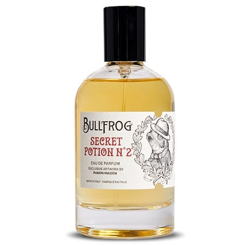 Bullfrog presents the second chapter in the Secret Potion saga, a fragrance that draws inspiration from the buzz that comes from the studio in which the artist works. The pungent metallic notes of the pen and the dark inky heart mix together in this revolutionary blend, full of mystery and symbolism. A rich and unpredictable composition with a secret fragrance pyramid, only a few notes of which can be revealed to the public. In any case, the artist never reveals his secrets. Ramon Maiden has created an exclusive image for Bullfrog: The Bullfrog, an important figure in the history of the brand and from which it takes its name, will be present on every bottle of the new fragrance.