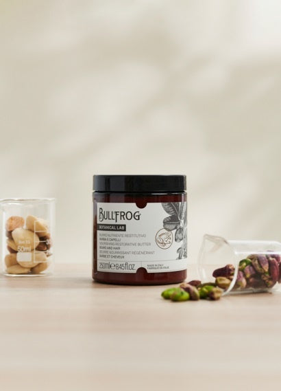 The Nourishing Restorative Butter is a hair and beard conditioner that is inspired by the most classic formulations, with a soft and enveloping texture, which contains the unmistakable pistachio fragrance.