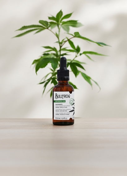 Oliocento is the latest Botanical Lab SkinCare Bullfrog creation, a 100% natural oil with a light, almost dry texture and delicate fragrance, designed for multiple uses: softening the beard and hair, making them brighter and nourishing them in depth; moisturize the skin of the face effectively, significantly increasing its elasticity; give a rested appearance, thanks to the action of one of the main ingredients: hemp oil.