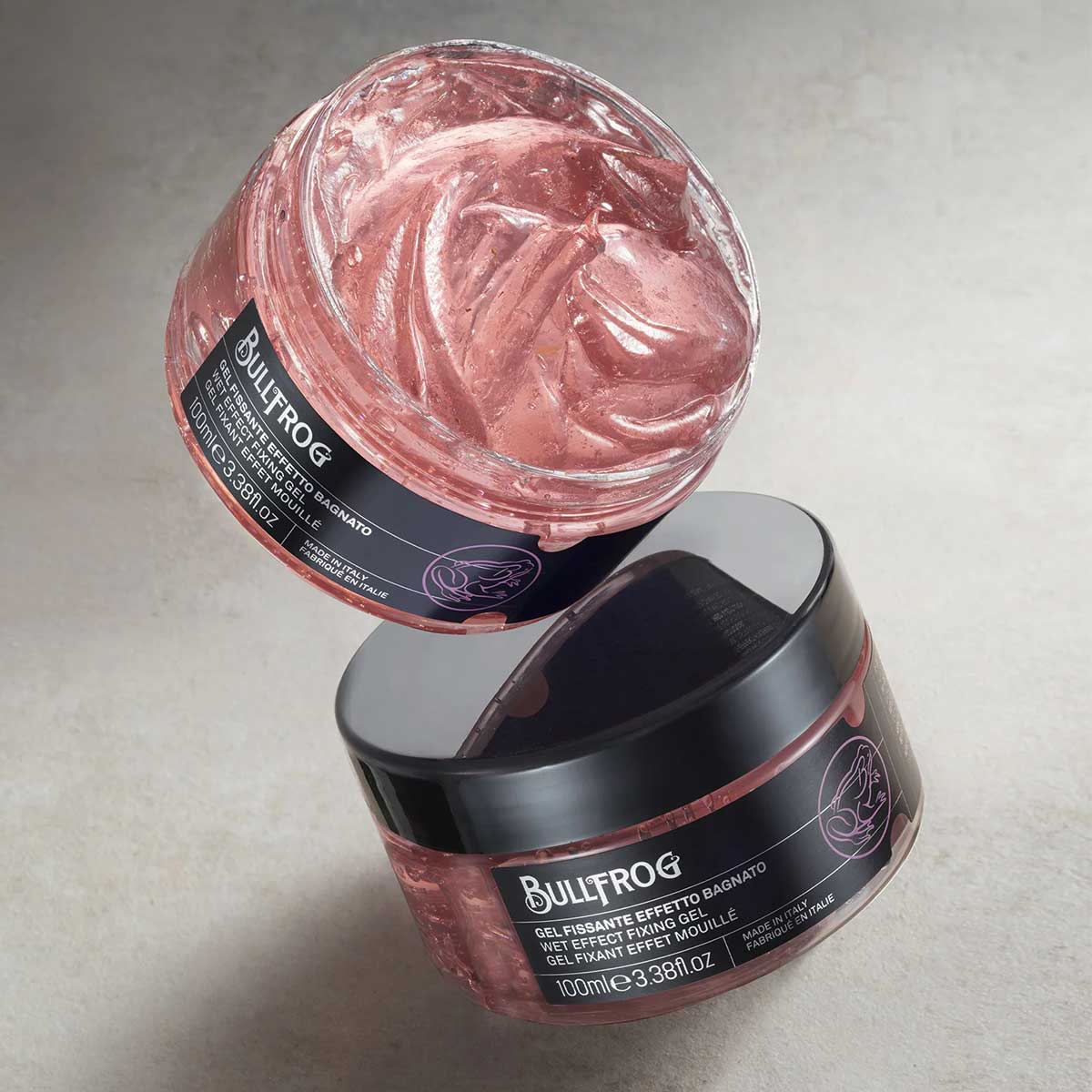 A fresh and light wet look gel for a shiny effect, with no stiffness or residue. The perfect styling product for anyone in search of a wet effect. It provides a glossy finish and firm hold, ideal for structured, long-lasting looks. The texture is light and non-sticky, perfect for everyday use or defined hairstyles.