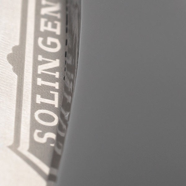 This straight razor is made of carbon steel with the material number 1.2210, better known as silver steel. In order to achieve a hardness of approximately 61 HRC, the material is heated to over 1000 degrees celsius and then immediately quenched with a special oil. The subsequent tempering at about 200 degrees celsius gives the blade elasticity and toughness.