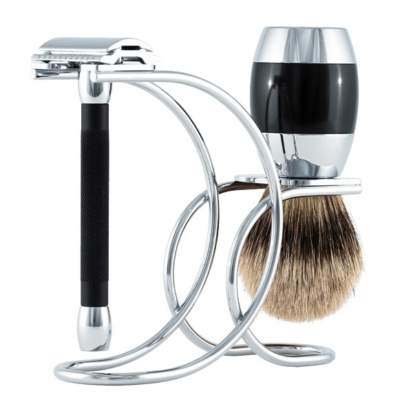 A real eye-catcher in your bathroom, this shaving set stands out on its high gloss chrome-plated razor stand. The MERKUR 20C always looks first class in such a setting. You can also hang the included shaving brush on the stand for easy drying. The perfect DE blade for the safety razor is also included in the set, so you can get started right away!