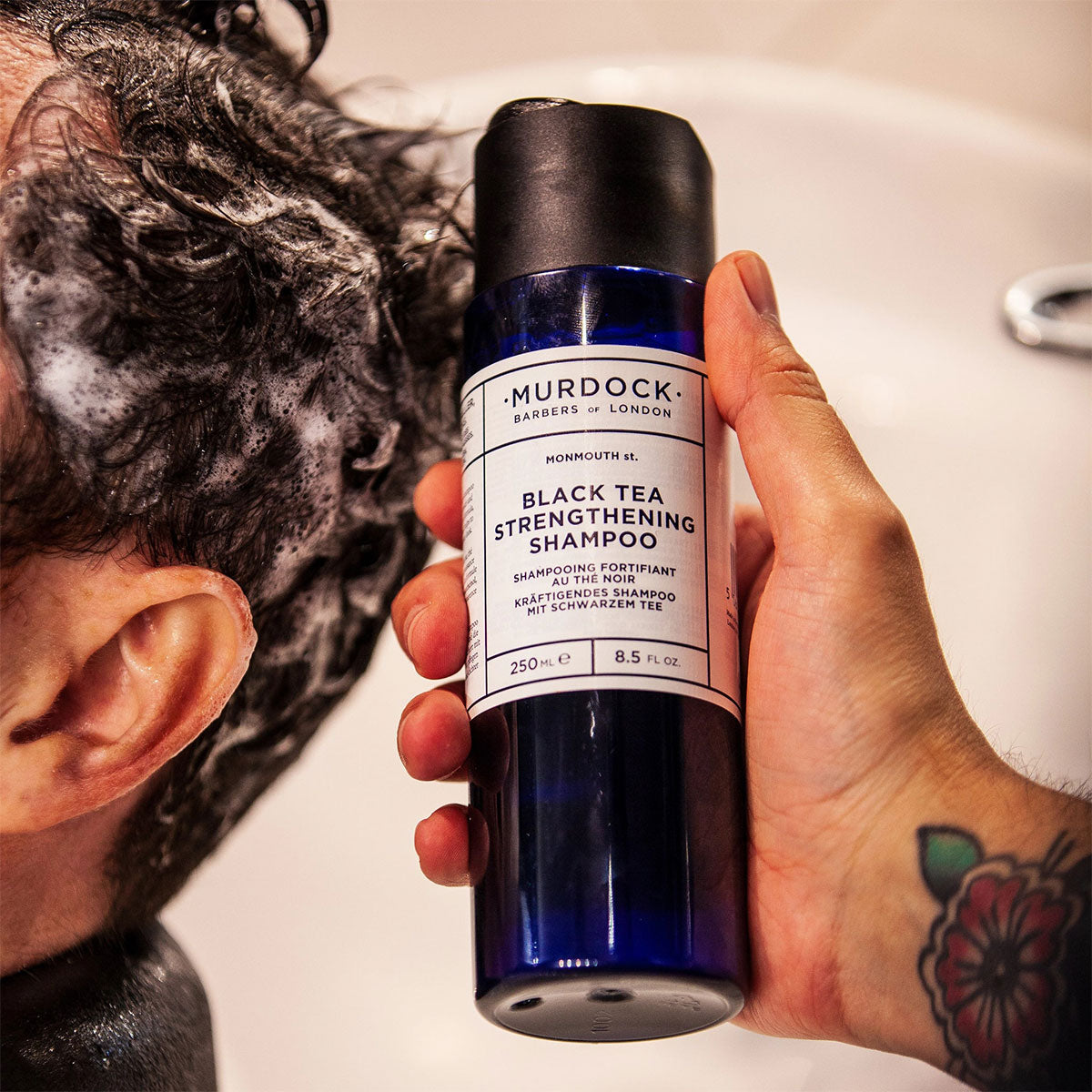 Boost your hair with fuller, thicker looking locks. Our Black Tea strengthening shampoo contains caffeine, which promotes hair growth and strengthens hair follicles. The sulphate-free formula, enriched with amino acids and panthenol, helps to nourish, protect and promote a fuller thicker look.