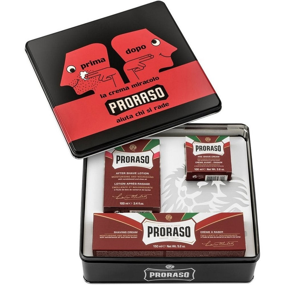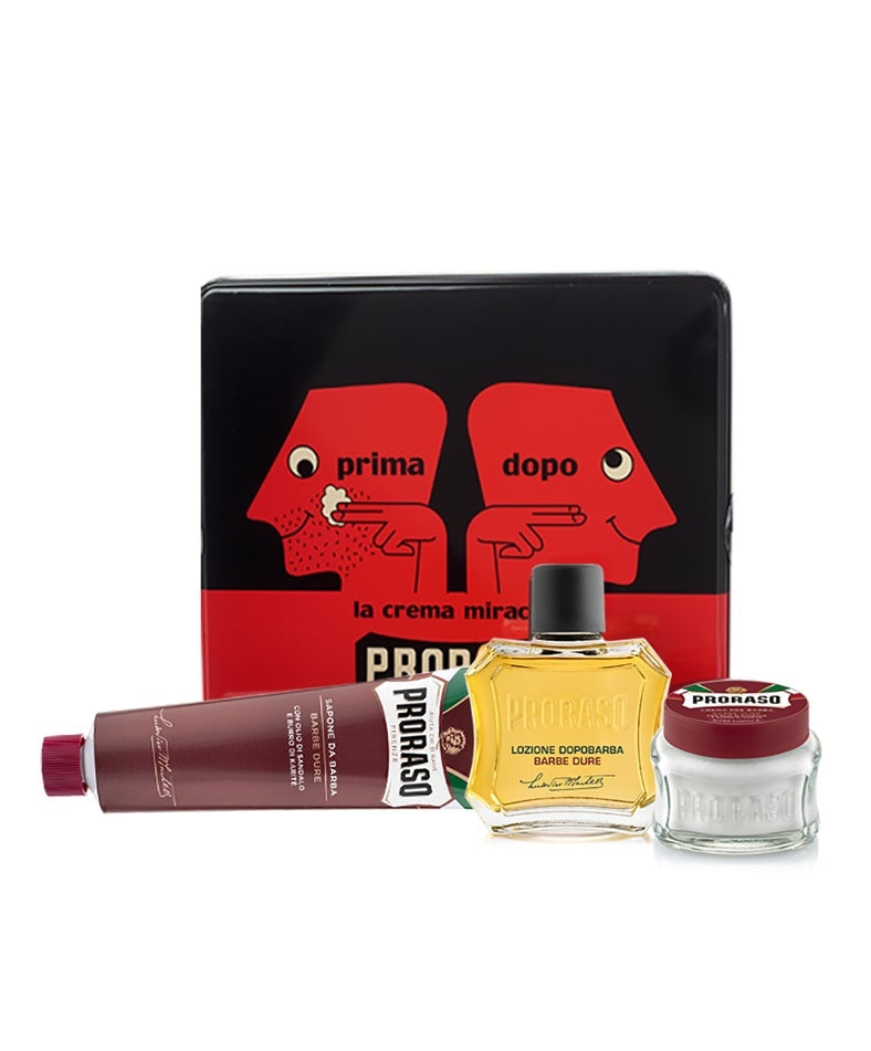 Our images are as legendary as our shaving products, conveying impeccable Italian taste and the history of a brand synonymous with quality in the shaving world for nearly a century. Now they’ve come together in this collectible tin, featuring our iconic advertising from the 1950’s as a tribute to the history of the brand, and including the three essentials for the classic Proraso shave at home.