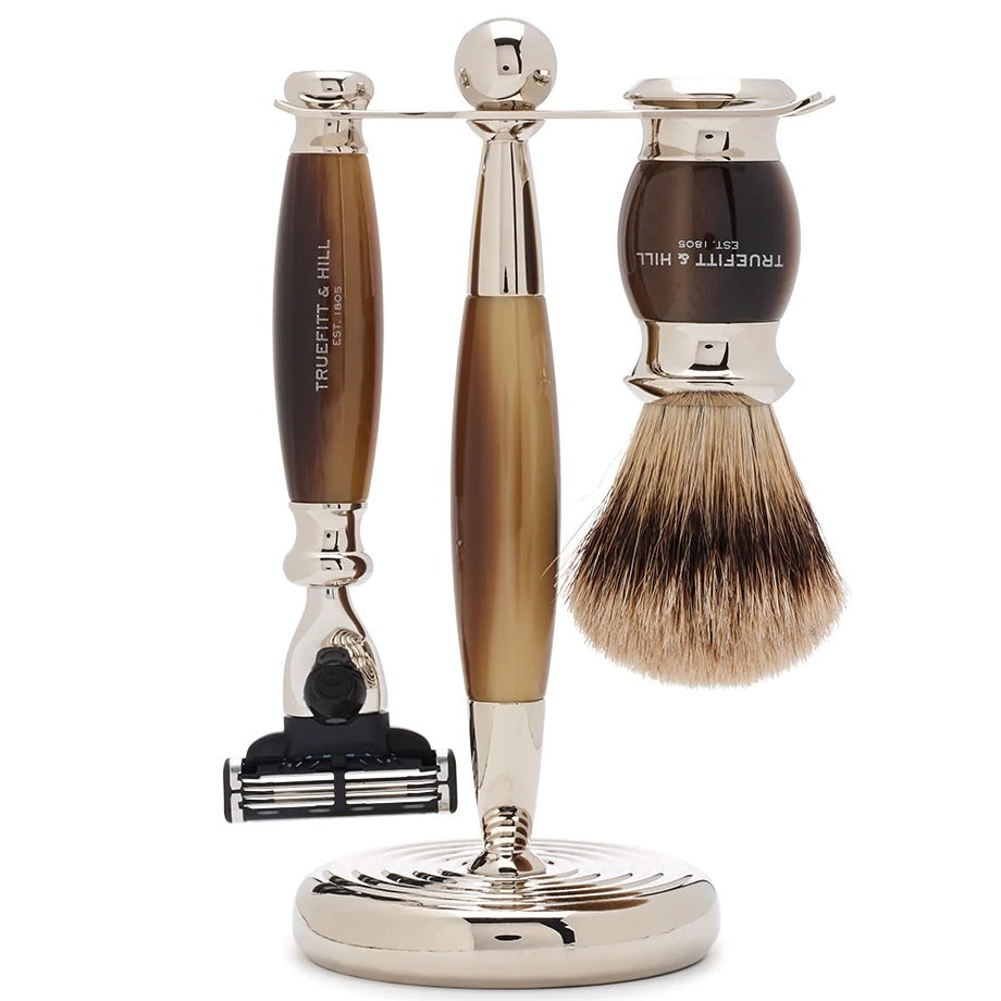 Truefitt & Hill’s traditional shaving set comprising a perfectly balanced razor, matching handmade super badger shaving brush and elegant chrome finish stand. Beautifully finished by hand.